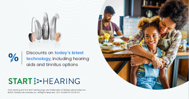 Start Hearing offers hearing benefits and exclusive discounts on Best-in-Class hearing aid technology, including rechargeable hearing aids and sophisticated tinnitus products. Our complimentary program is designed to help members and their families with their hearing needs and improve their quality of life through better hearing.